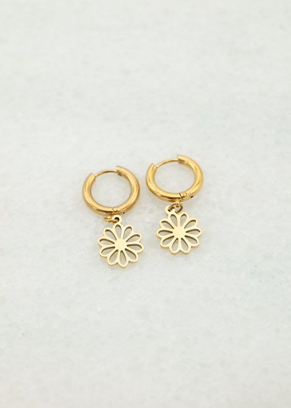 Roestvrij stalen oorbellen met een bloemen hanger van 1,5cm doorsnee